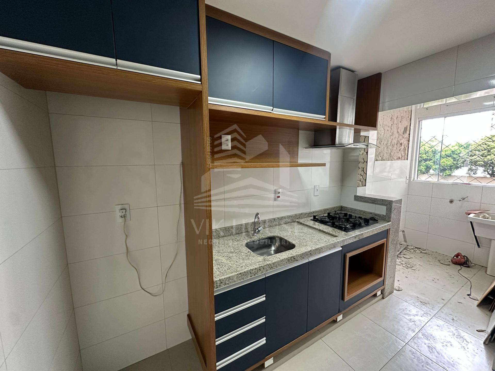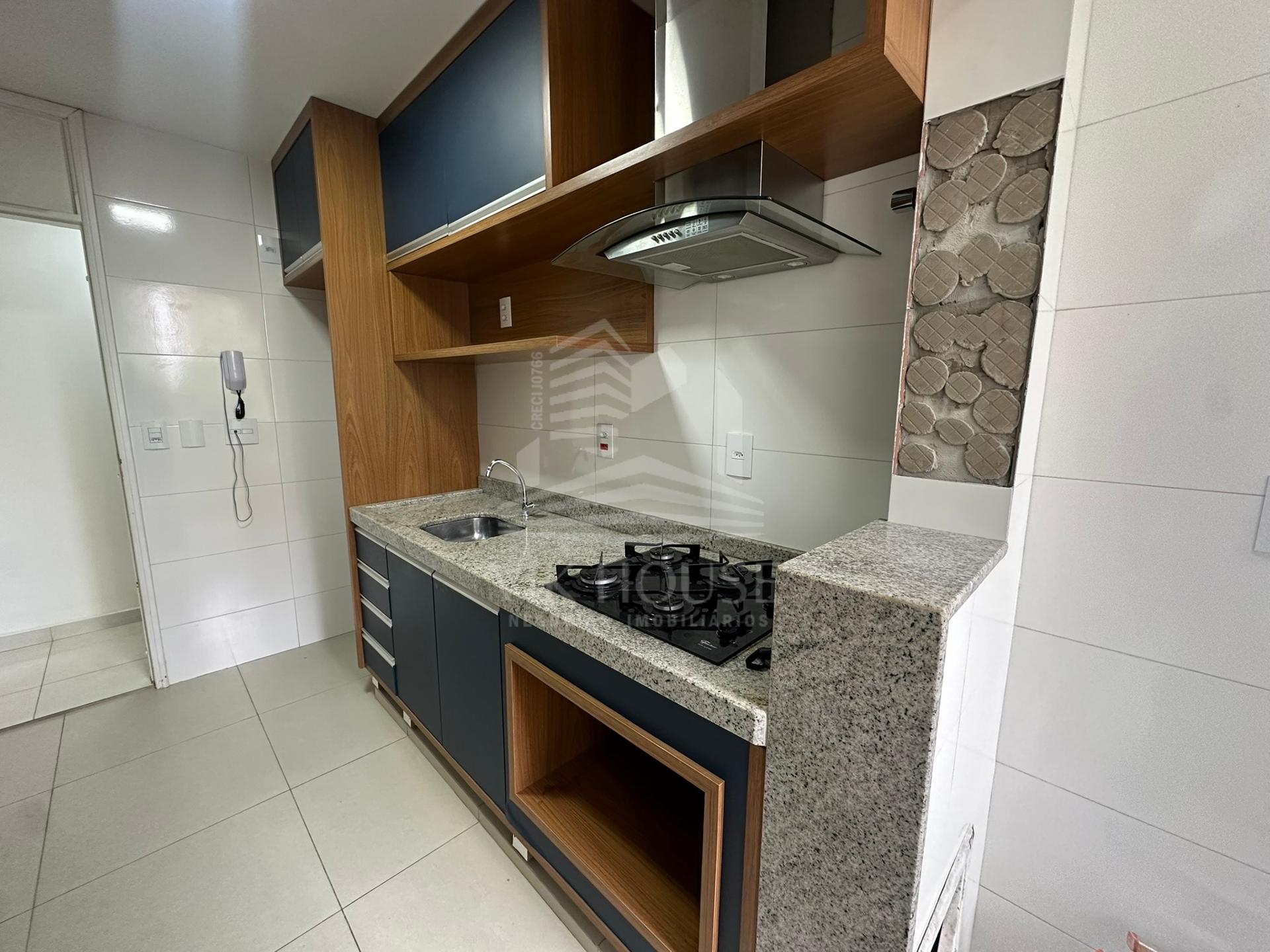 Contendo: - 1 suíte com ar condicionado. - 2 dormitórios (sendo 1 com ar condicionado). - Banheiro social; - Cozinha com armários planejados, fogão e coifa; - Área de serviço; - Sala de estar/jantar com painel em MDF; - Uma vaga de garagem coberta.