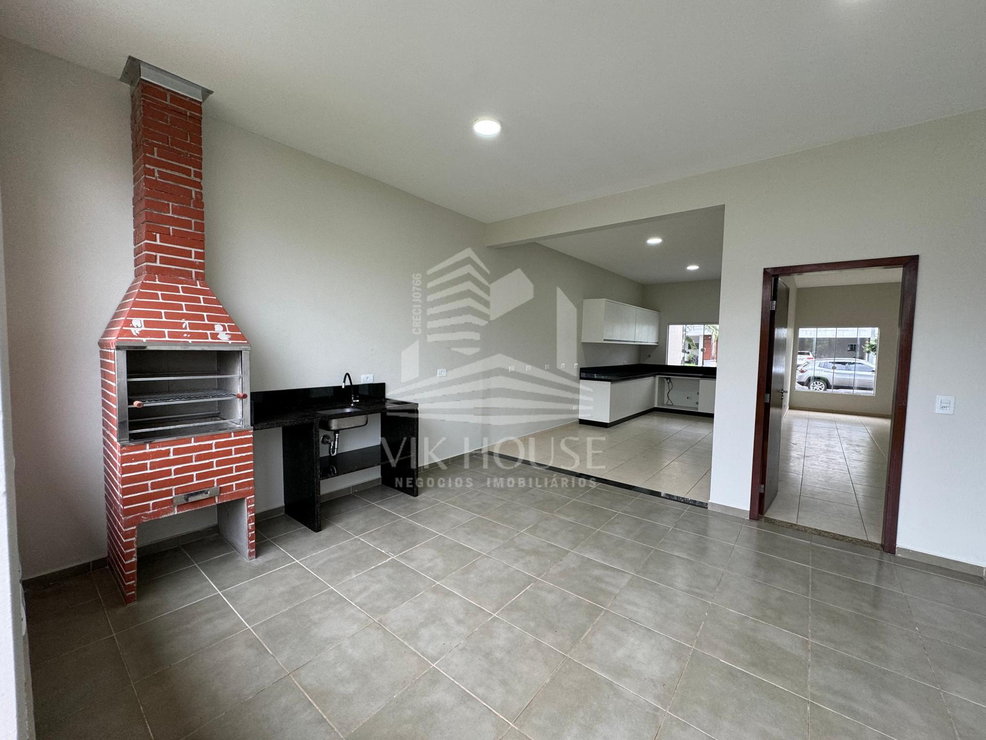 - Duas Suítes; - Duas Demi suítes; - Banheiro social; - Sala de estar; - Sala de jantar; - Lavabo; - Cozinha; - Churrasqueira; - Área de serviço; - Quintal amplo nos fundos; - Garagem para dois veículos.