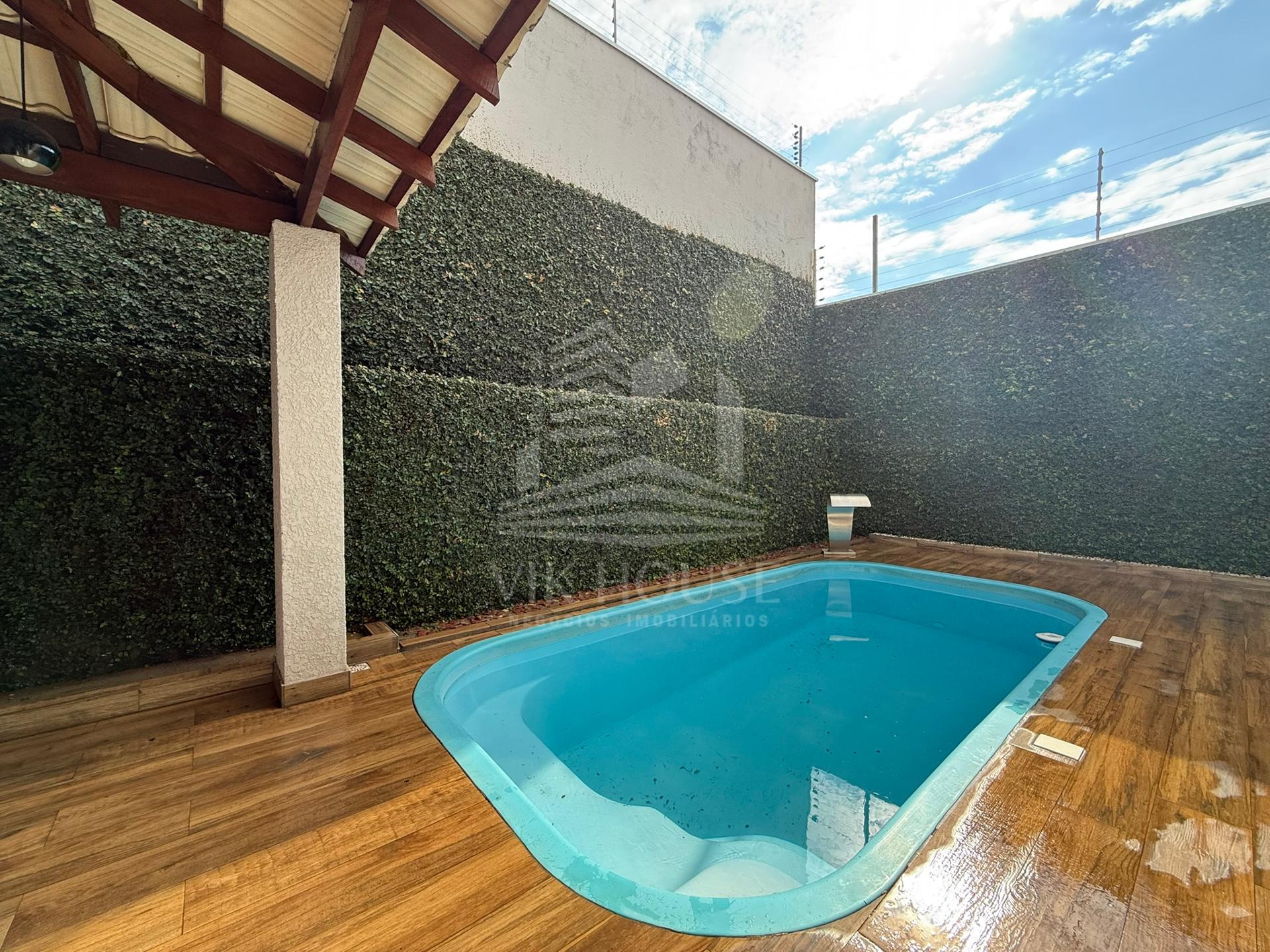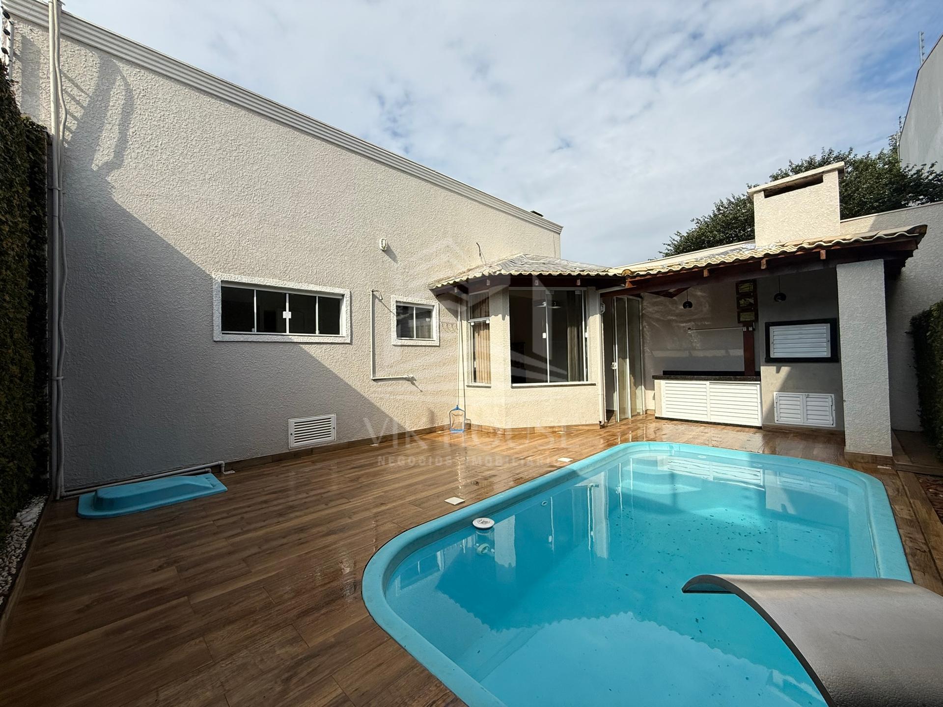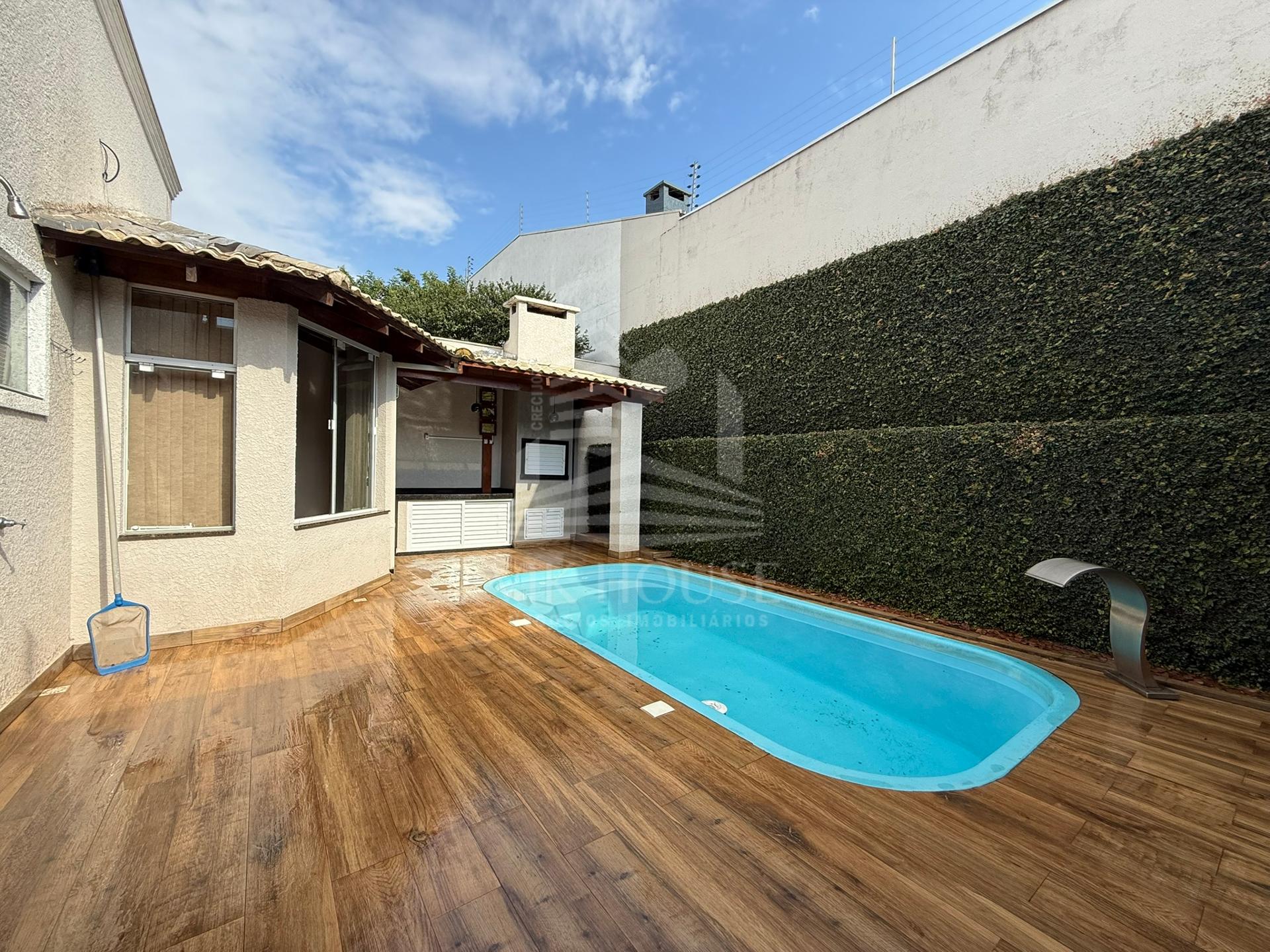 DESCRIÇÃO: * 01 Suíte com hidromassagem; * 02 Dormitórios; * Sala de estar; * Sala de jantar; * Cozinha; * Banheiro social; * Lavanderia; * Area gourmet com churrasqueira; * Piscina aquecida com cascata; * Cerca elétrica; * Placa aquecedor de agua; * 02 Vagas de garagem