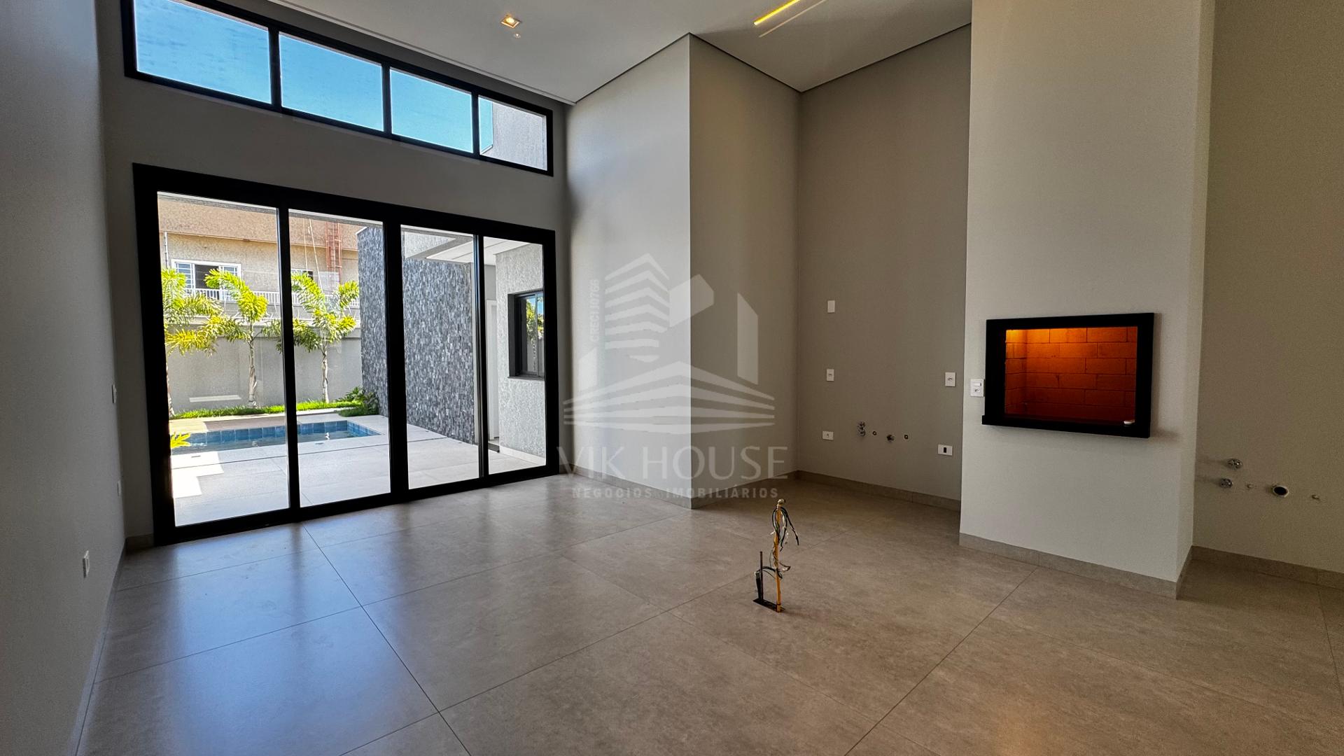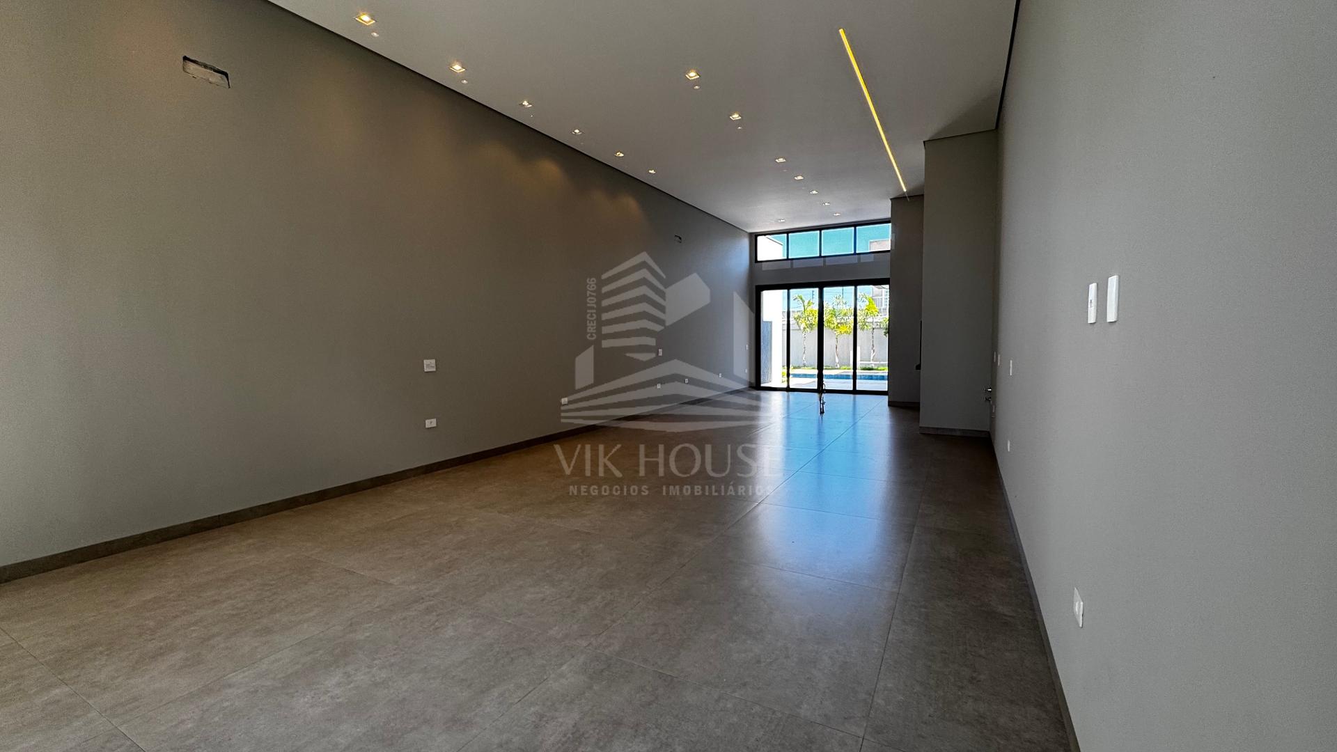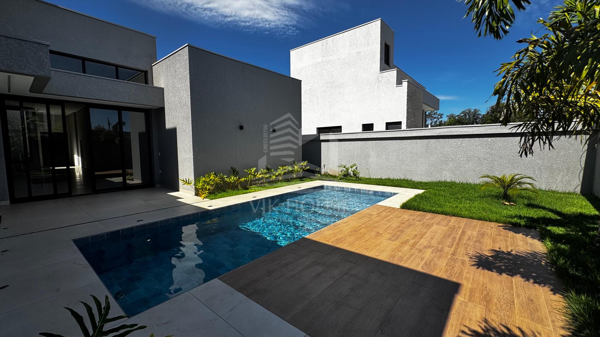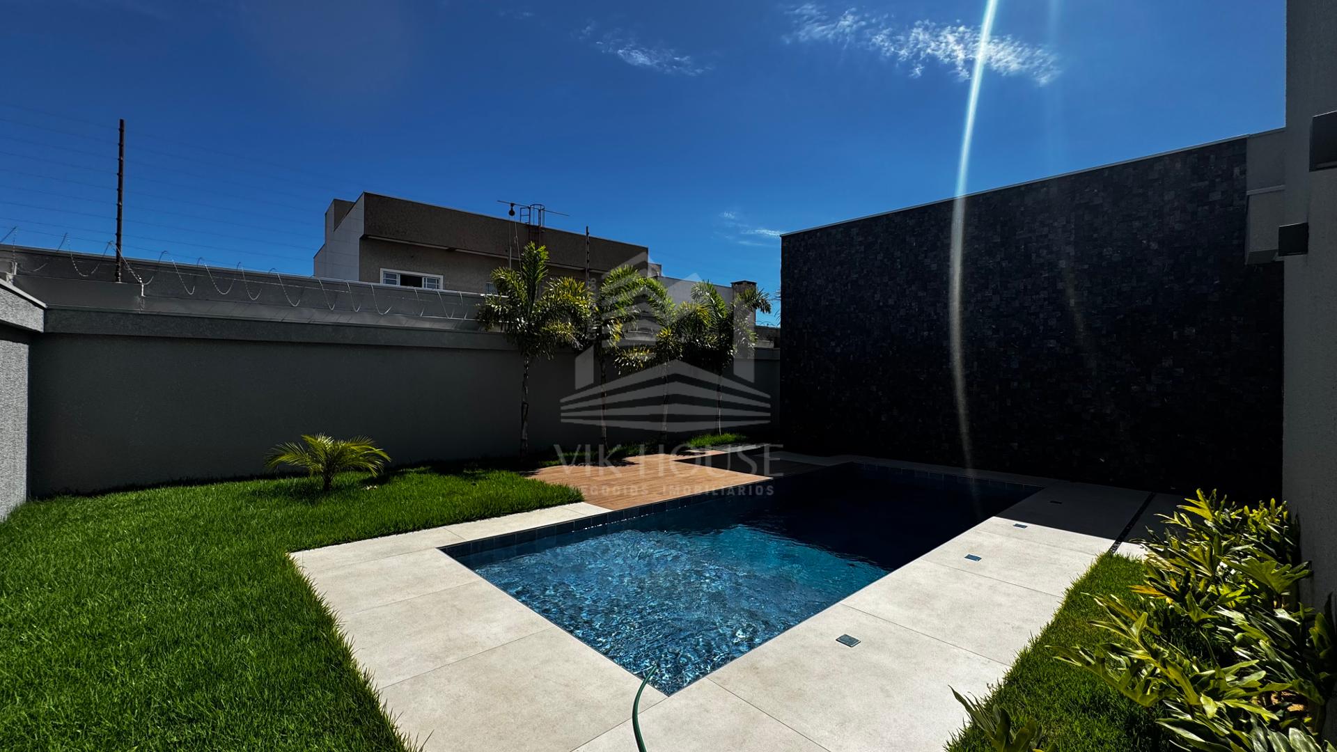 DESCRIÇÃO: - Sala de estar com pé direito duplo; - Lavabo; - Espaço gourmet com acesso para piscina; - Área de lazer com piscina e lavabo; - Três suítes, sendo uma master com closet; - Área de serviço; - Deposito; - Garagem coberta para dois veículos;
