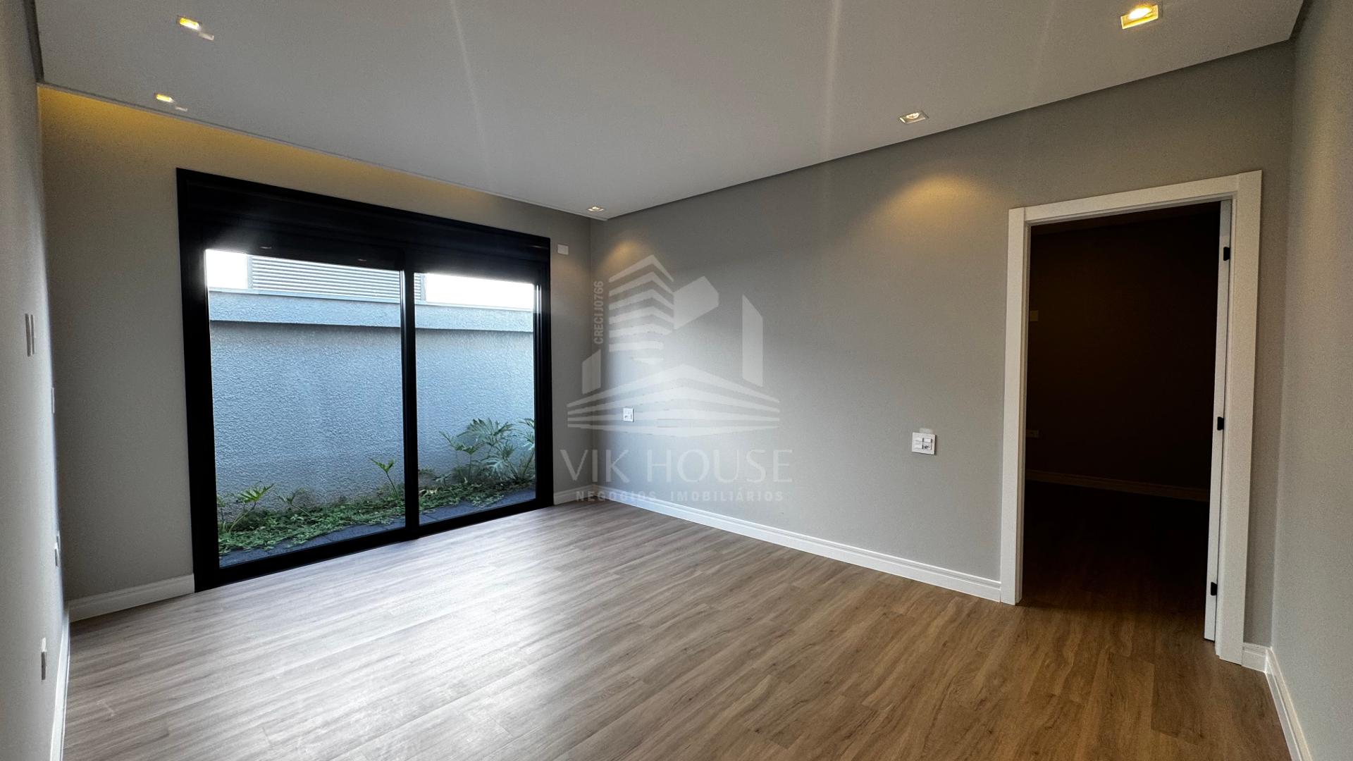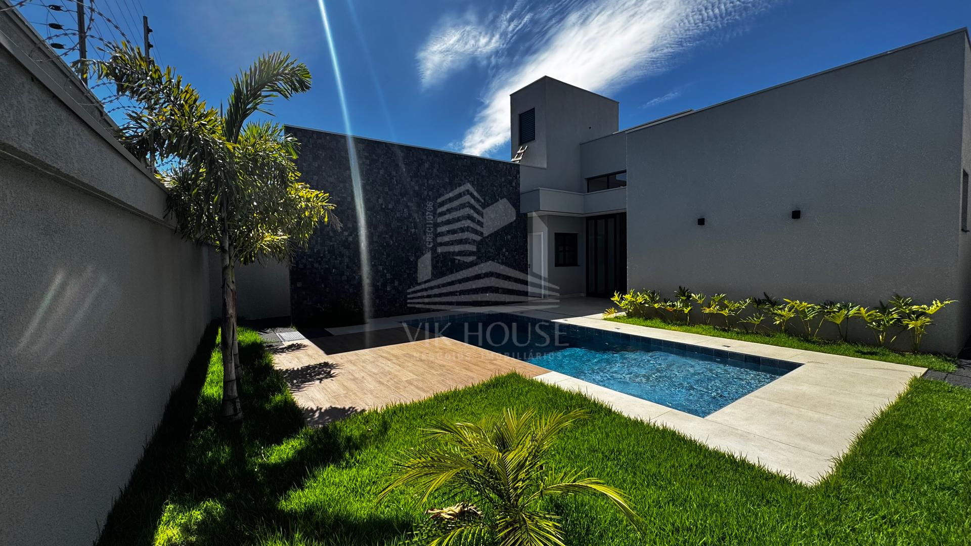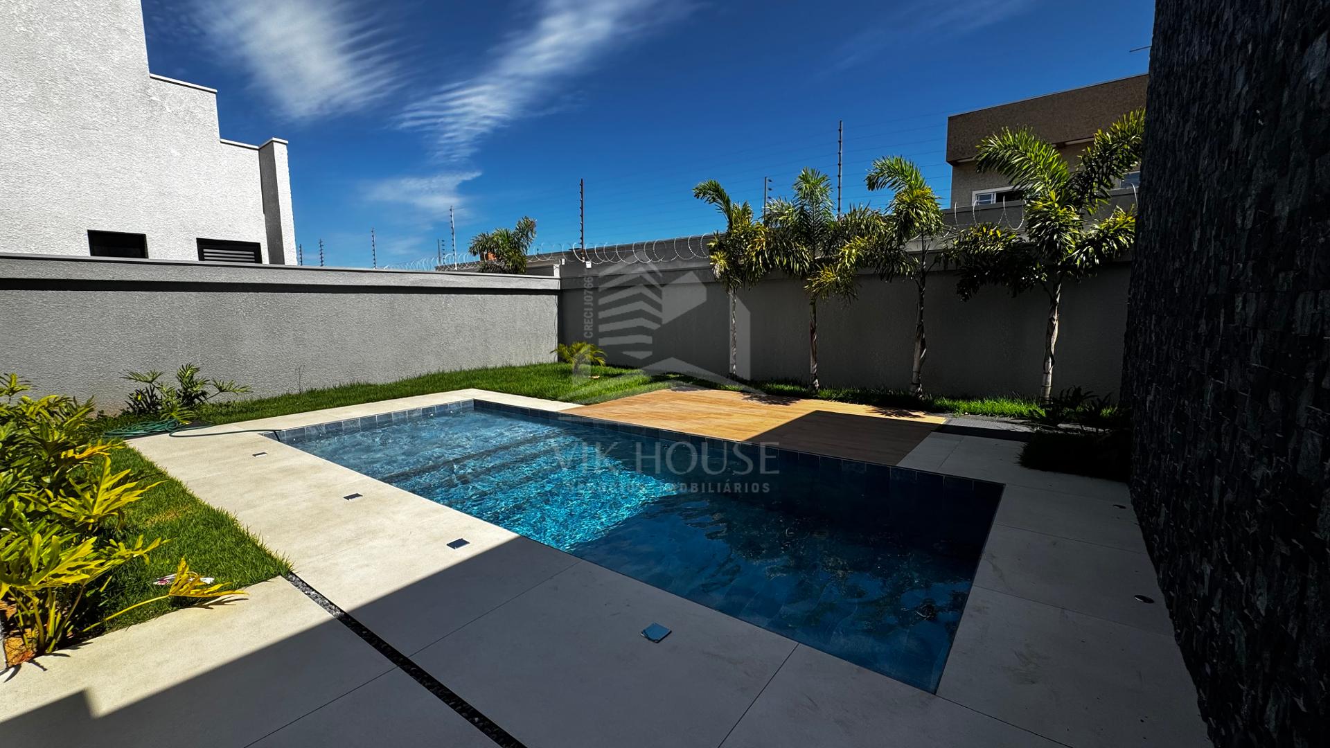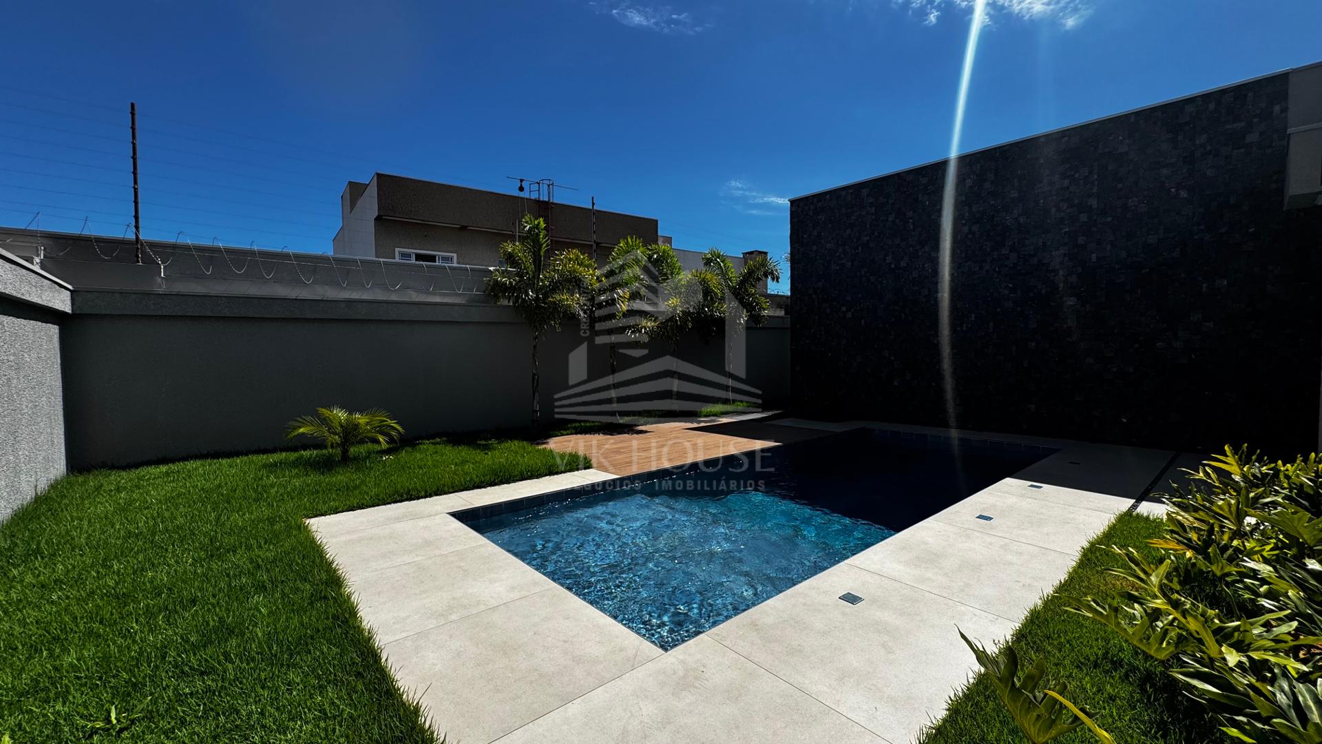DESCRIÇÃO: - Sala de estar com pé direito duplo; - Lavabo; - Espaço gourmet com acesso para piscina; - Área de lazer com piscina e lavabo; - Três suítes, sendo uma master com closet; - Área de serviço; - Deposito; - Garagem coberta para dois veículos;