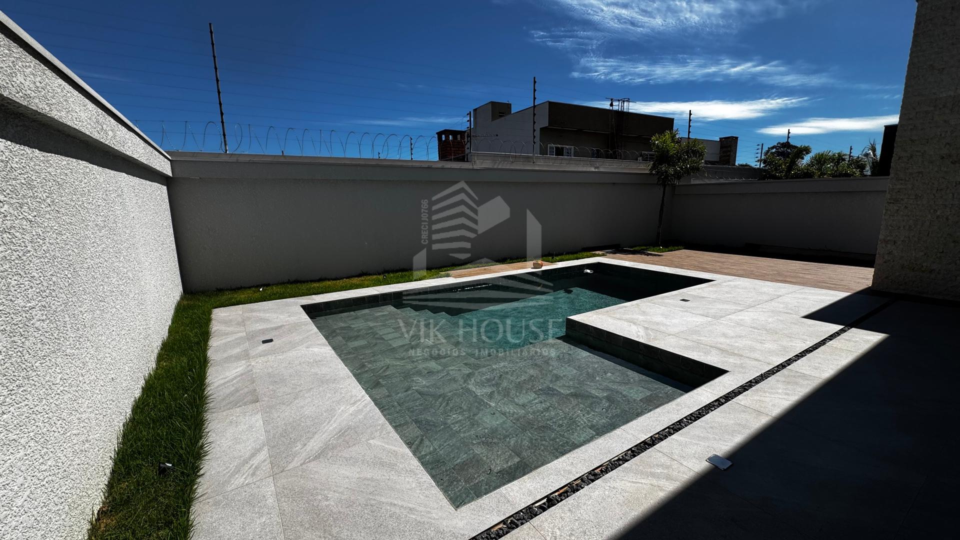 DESCRIÇÃO: - Sala de estar com pé direito duplo; - Sala de jantar; - Cozinha; - Lavabo; - Espaço gourmet; - Piscina com prainha; - Três suítes, sendo uma master com closet; - Área de serviço; - Deposito; - Garagem coberta para dois veículos;
