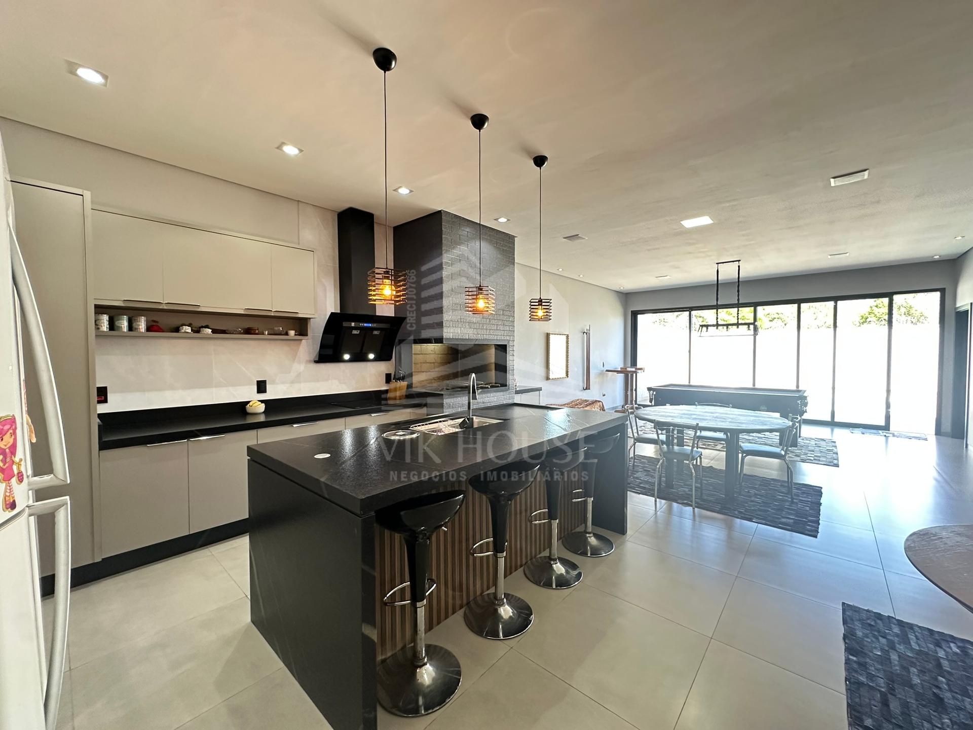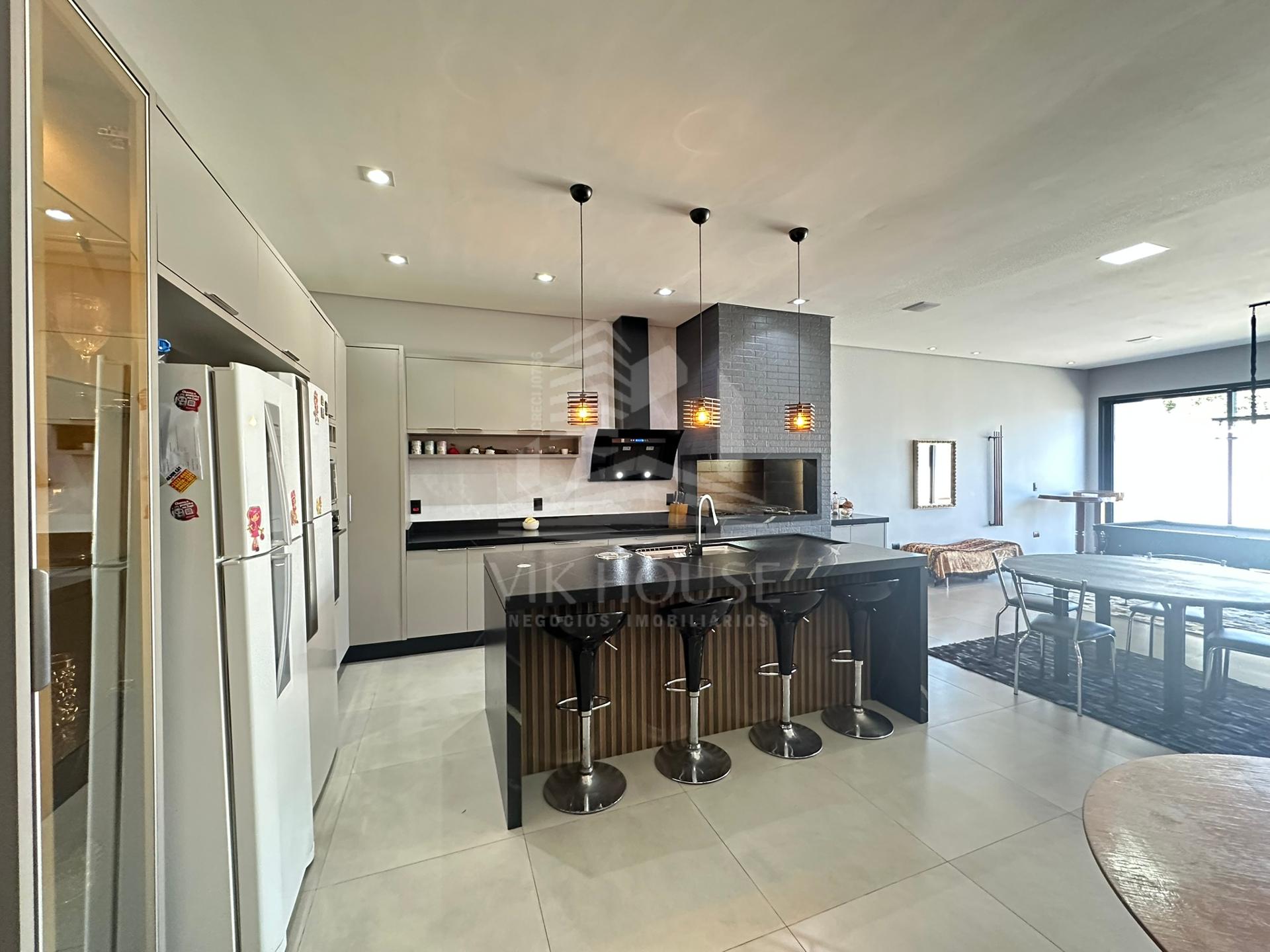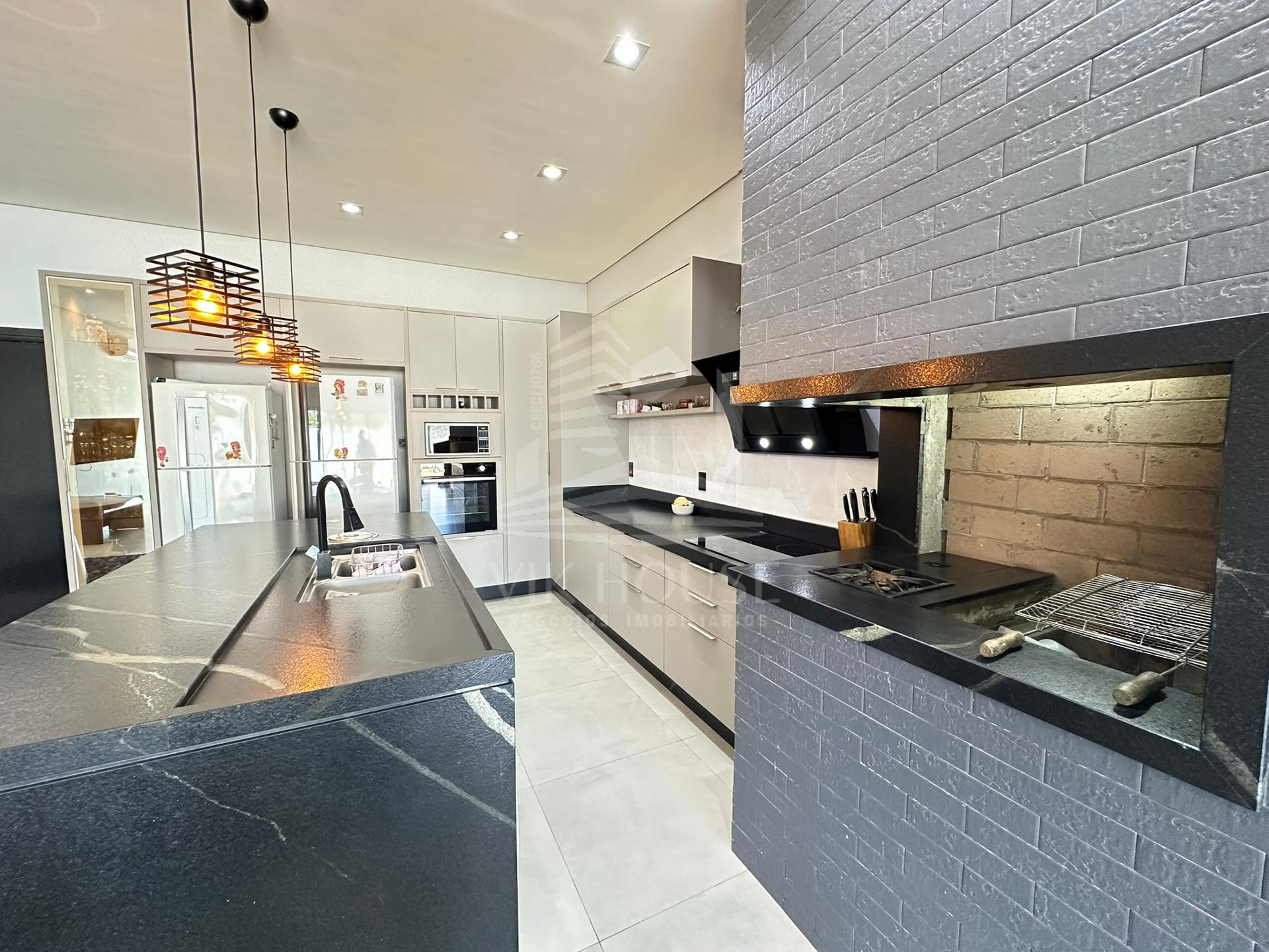 - Cozinha com bancada em granito de alto padrão e móveis planejados, integrada com a área gourmet com churrasqueira revestida em porcelanato e granito, com fogão de alta pressão, som ambiente instalado/wi-fi (4 caixas JBL no teto), mesa de sinuca, espaço para mesas e sofás, com linda visão para piscina;