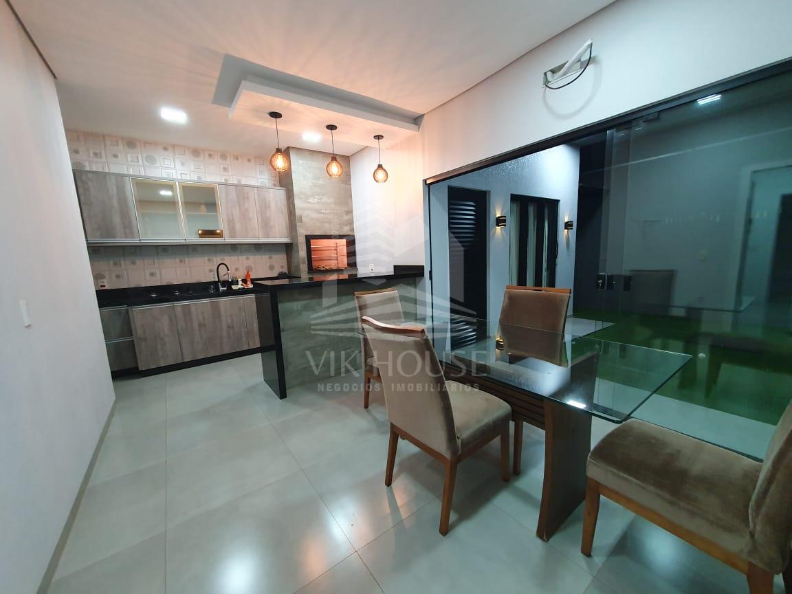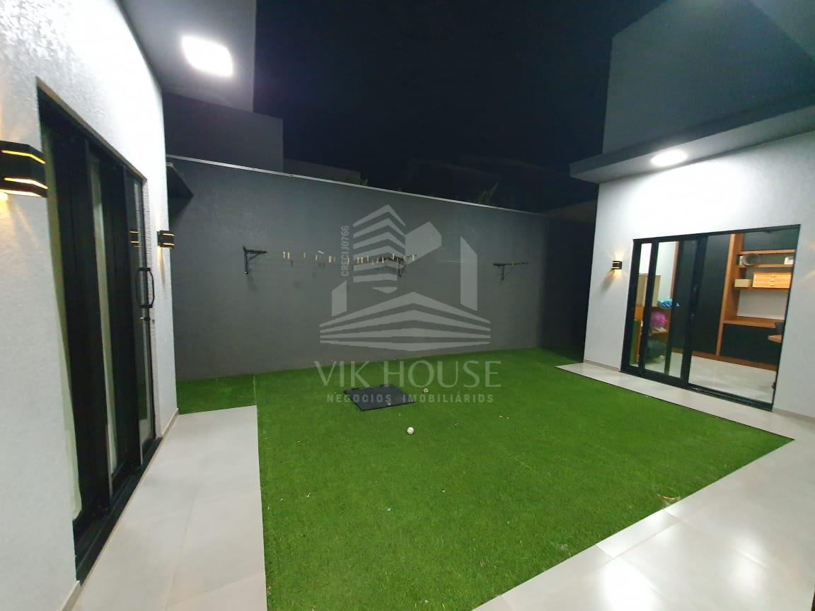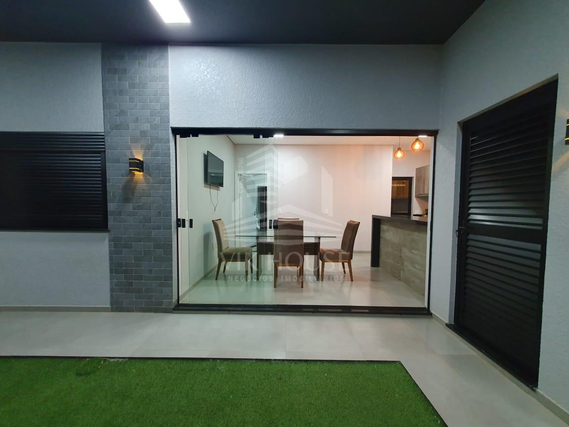 CONTENDO: - 1 Suíte com closet e móveis planejados; - 2 Quartos (sendo 1 com móveis planejados); - Sala de estar e jantar com painel de TV; - Banheiro social; - Cozinha com móveis planejados; - Área gourmet; - Banheiro externo; - Escritório com móveis planejados; - Lavanderia; - Placas Fotovoltaicas (energia solar); - Cisterna (captação de água da chuva); - 2 Vagas de garagem paralelas.