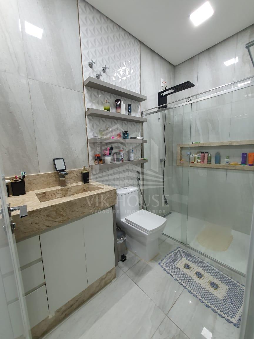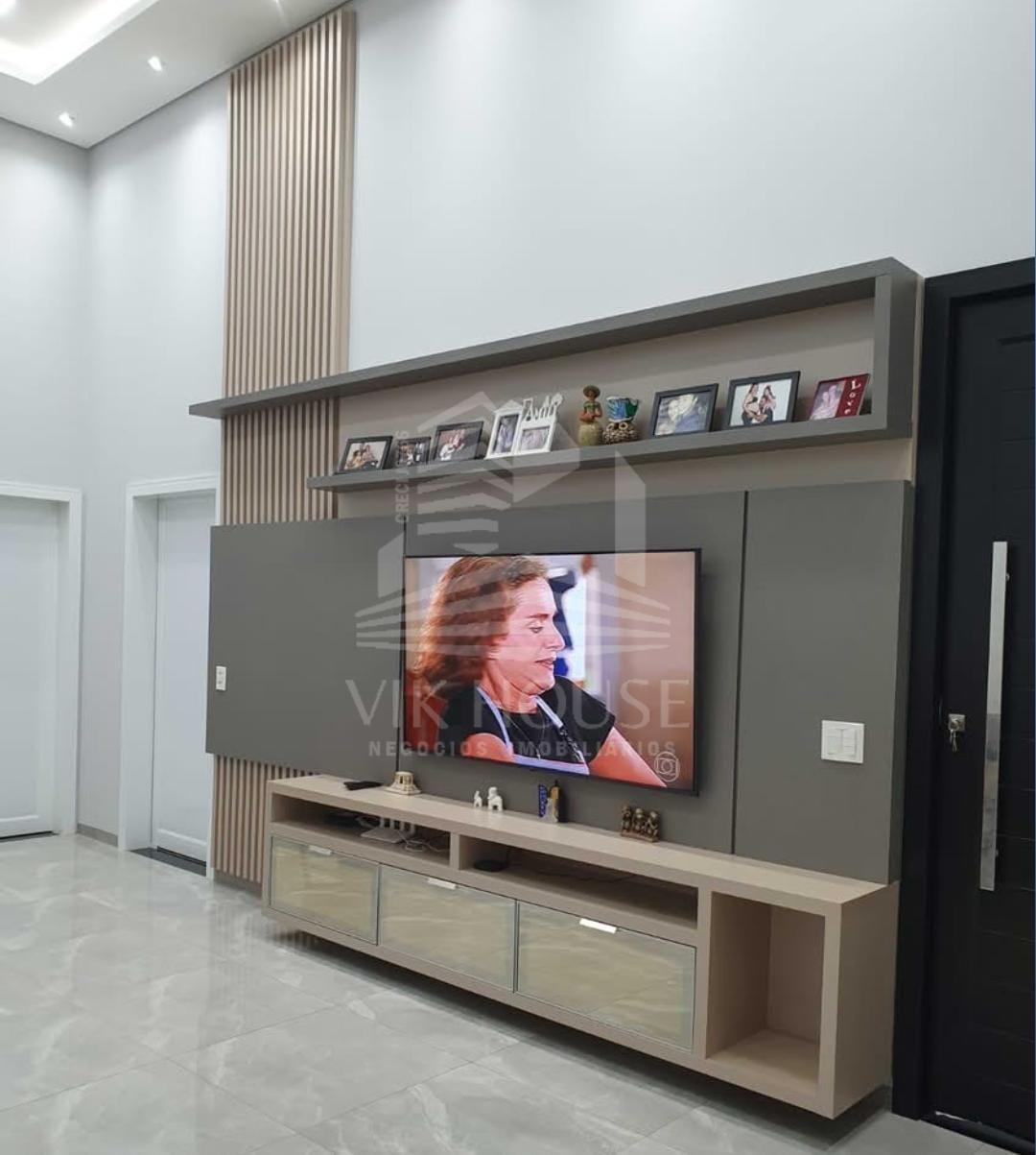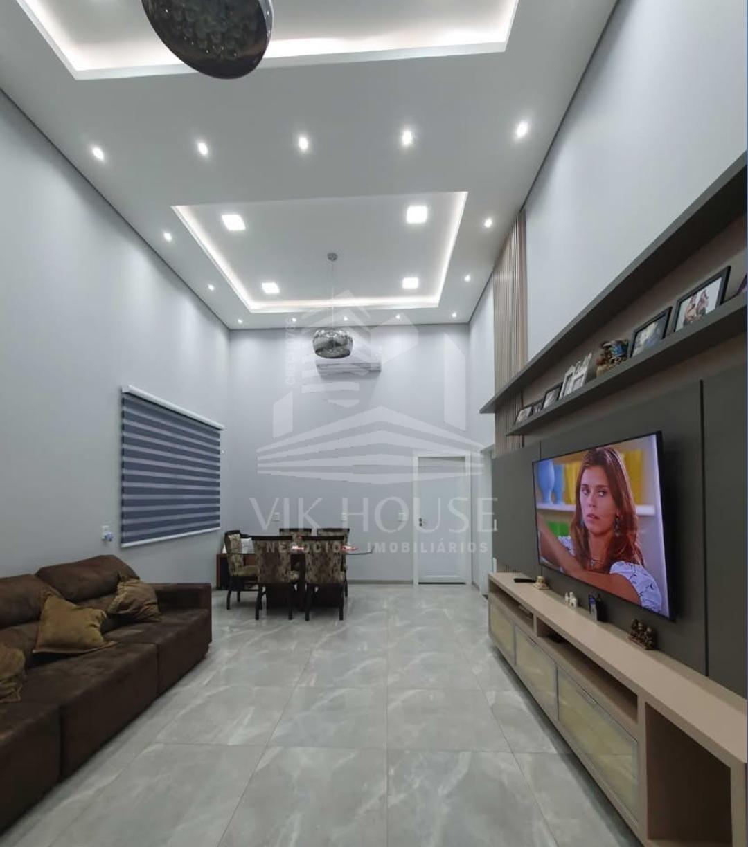 CONTENDO: - 1 Suíte com closet e móveis planejados; - 2 Quartos (sendo 1 com móveis planejados); - Sala de estar e jantar com painel de TV; - Banheiro social; - Cozinha com móveis planejados; - Área gourmet; - Banheiro externo; - Escritório com móveis planejados; - Lavanderia; - Placas Fotovoltaicas (energia solar); - Cisterna (captação de água da chuva); - 2 Vagas de garagem paralelas.