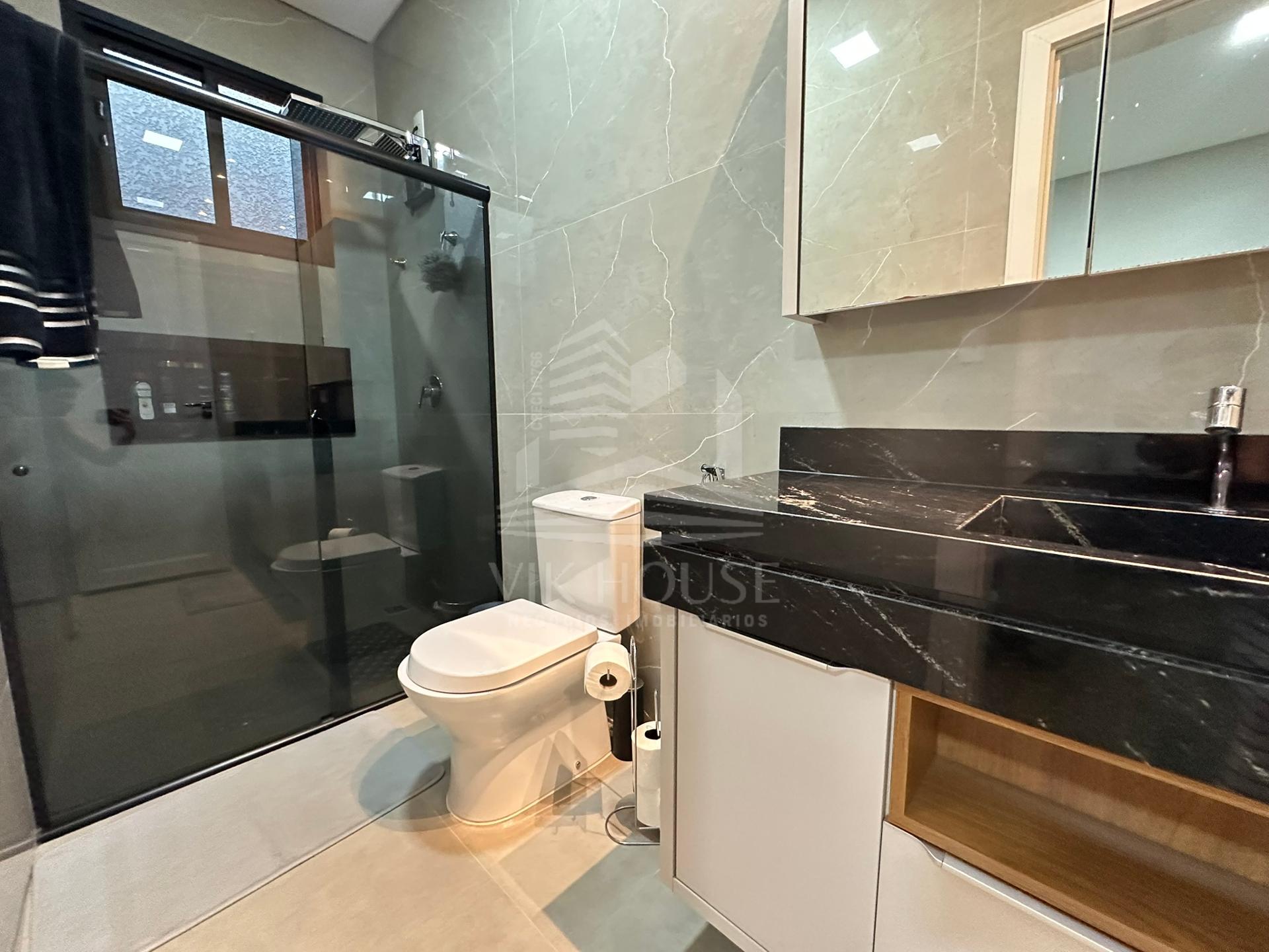 - Sistema de aquecimento de água via energia solar; - Painéis solares; - Amplo espaço externo nos fundos, ideal para construção de piscina ou jardim. - Ar condicionado em todos os ambientes; - Móveis planejados em todos os ambientes; - Portas e janelas em alumínio com automação; - Opcional: A casa está disponível para venda também no modo: PORTEIRA FECHADA.