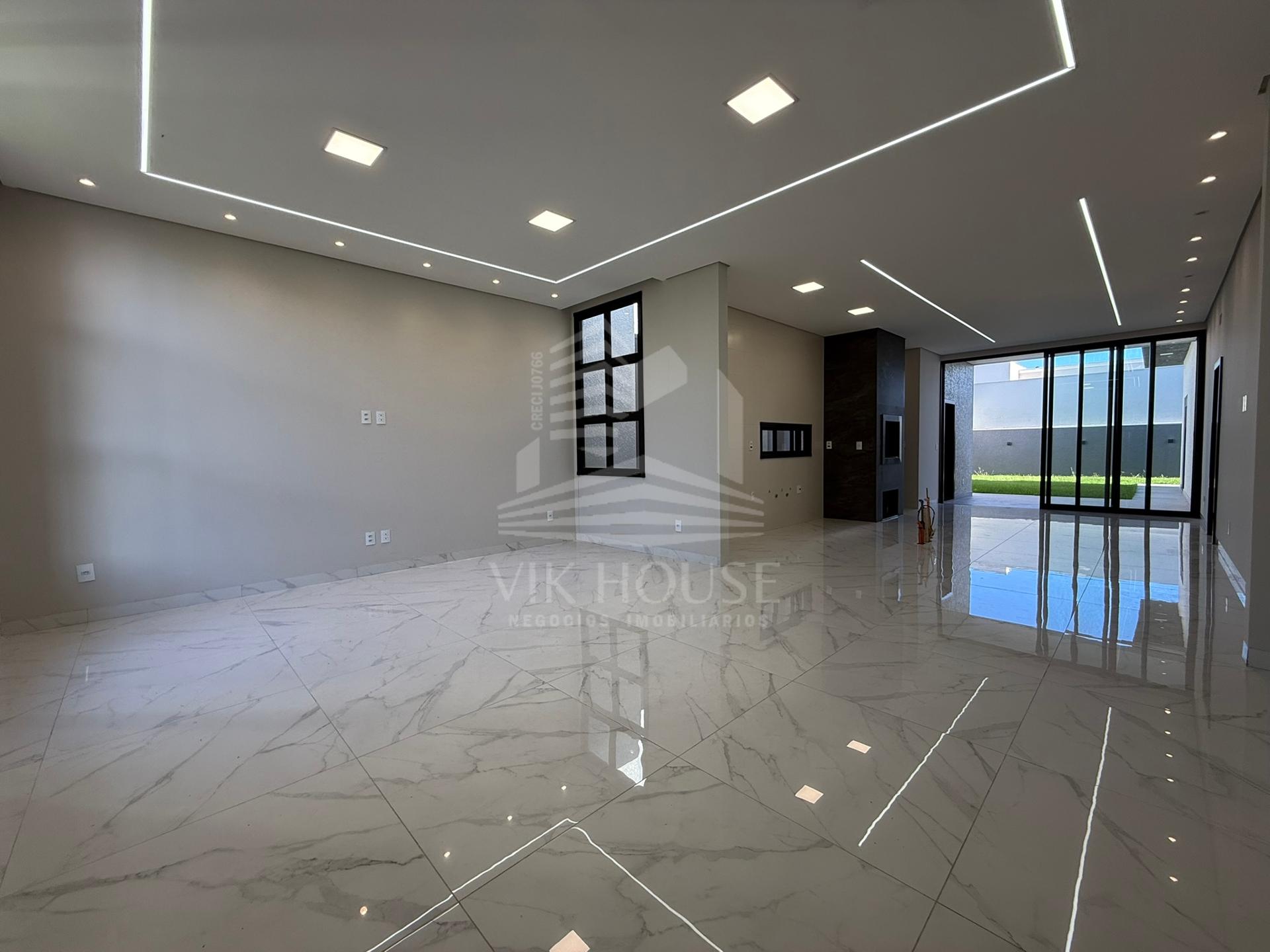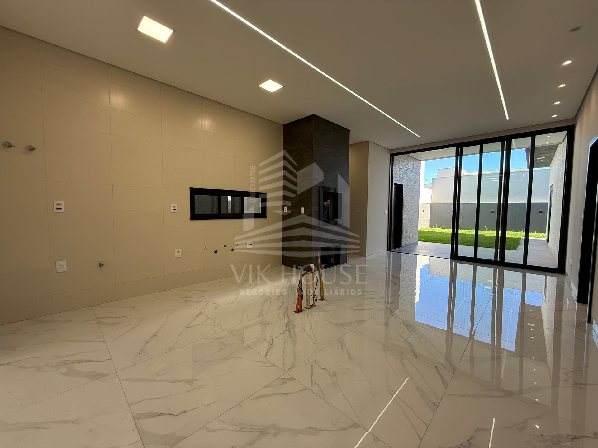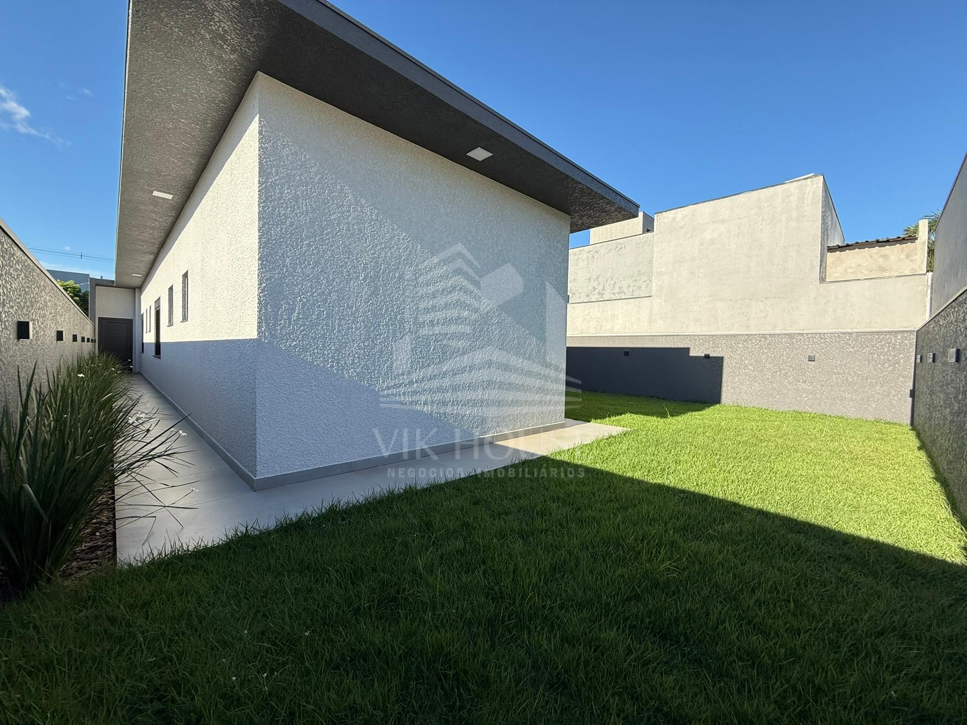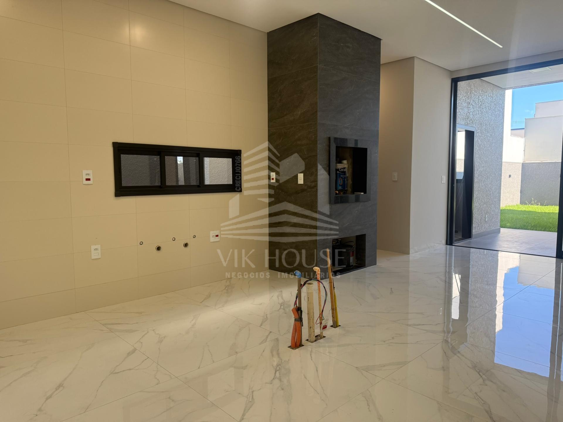 COMPOSTA POR: - Sala de estar / tv; - Cozinha gourmet; - Banheiro na área gourmet; - Lavanderia; - 3 suítes sendo 1 master com closet; - 2 Vagas de garagem; - Jardim com espaço destinado a instalação de piscina (preparação elétrica e hidráulica); - Portas e janelas em alumínio; - Revestimentos padrão diamante; - Persianas automatizadas nas suítes;