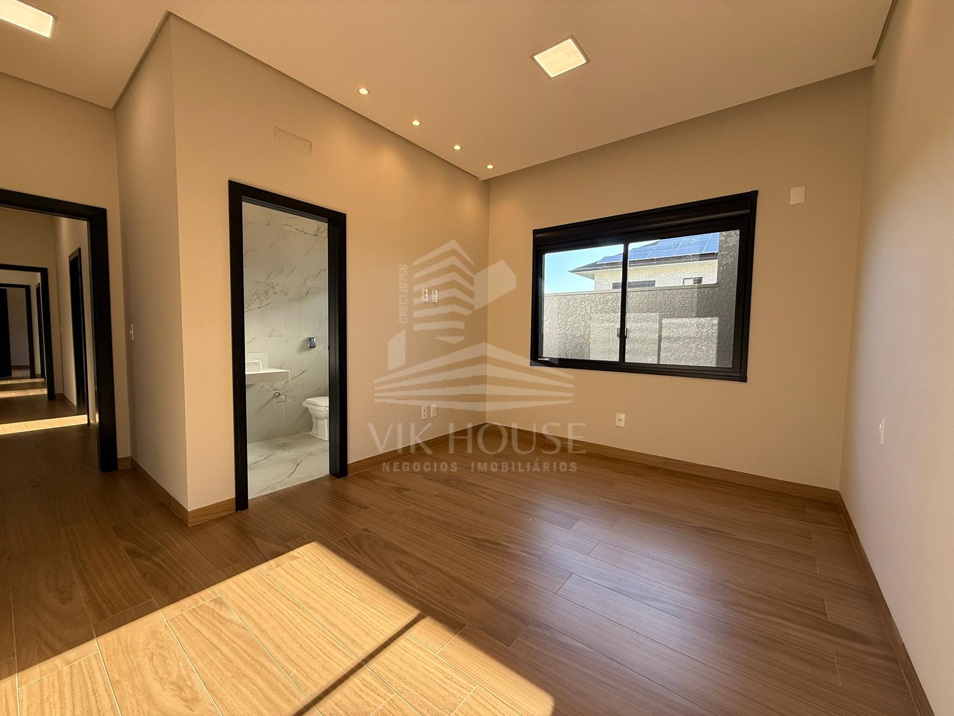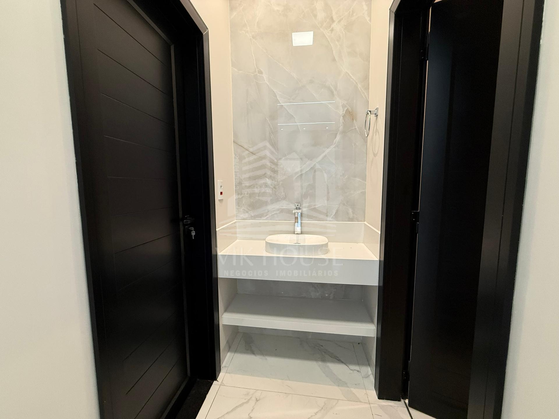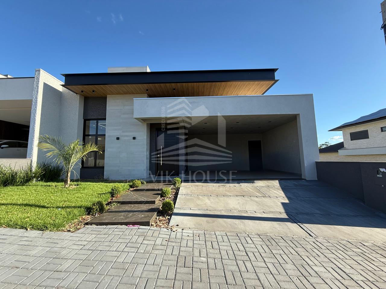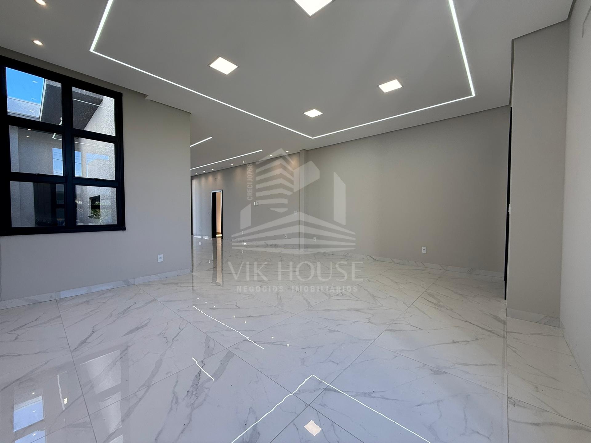 COMPOSTA POR: - Sala de estar / tv; - Cozinha gourmet; - Banheiro na área gourmet; - Lavanderia; - 3 suítes sendo 1 master com closet; - 2 Vagas de garagem; - Jardim com espaço destinado a instalação de piscina (preparação elétrica e hidráulica); - Portas e janelas em alumínio; - Revestimentos padrão diamante; - Persianas automatizadas nas suítes;