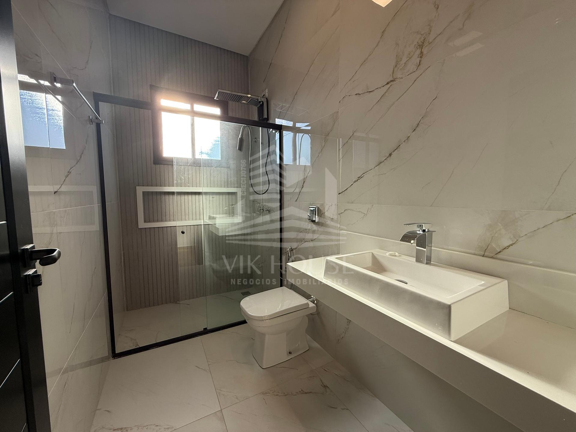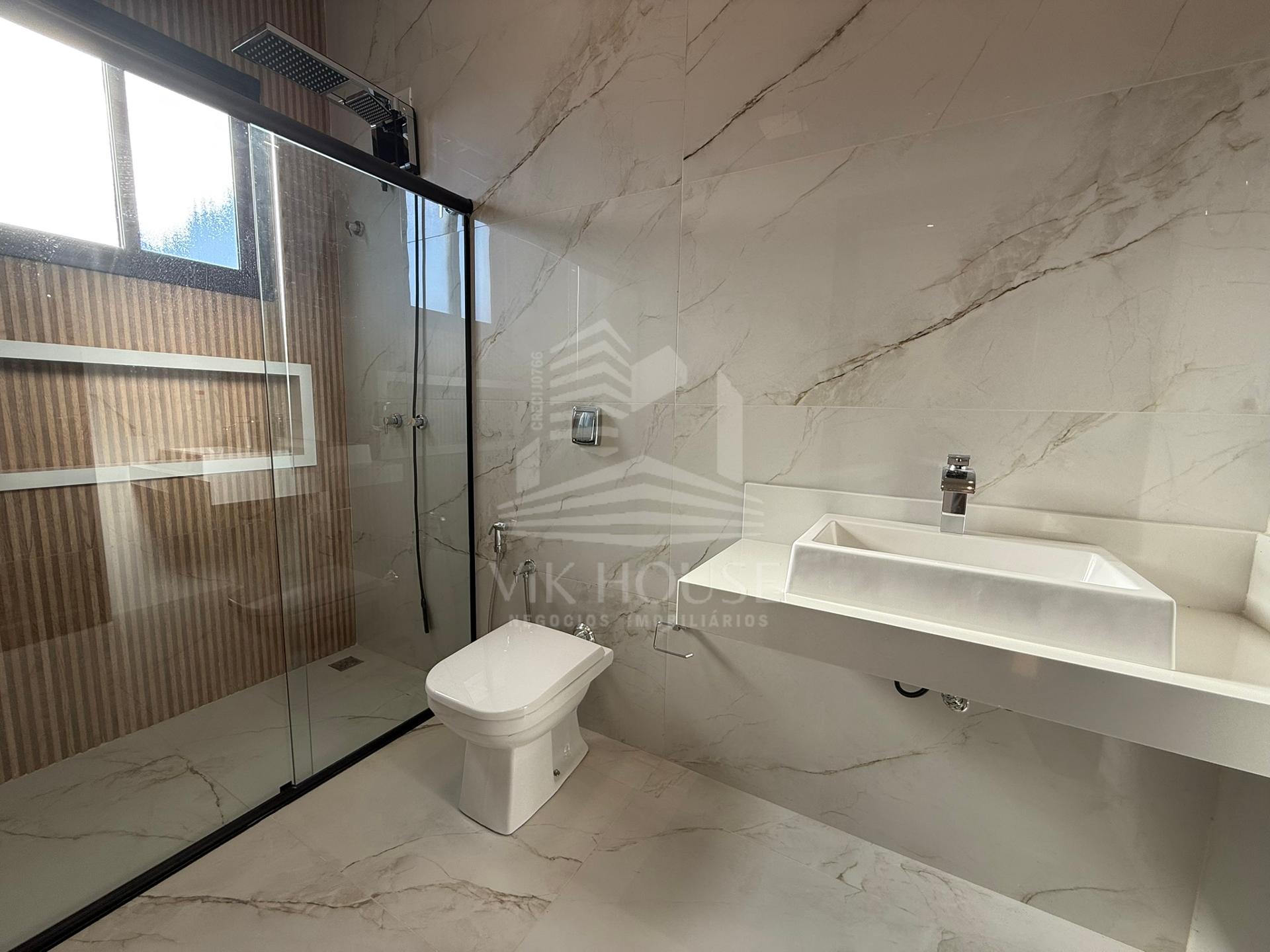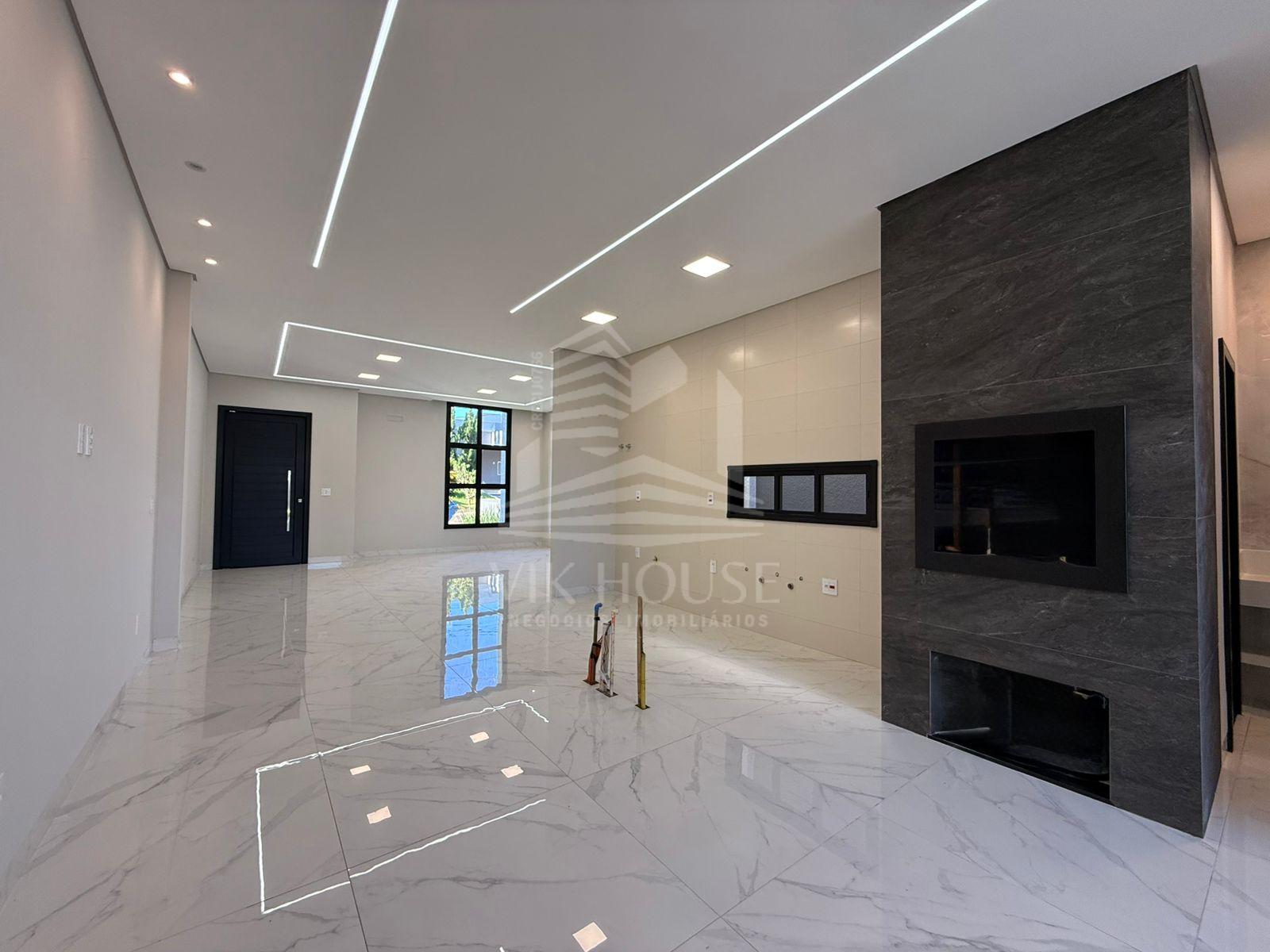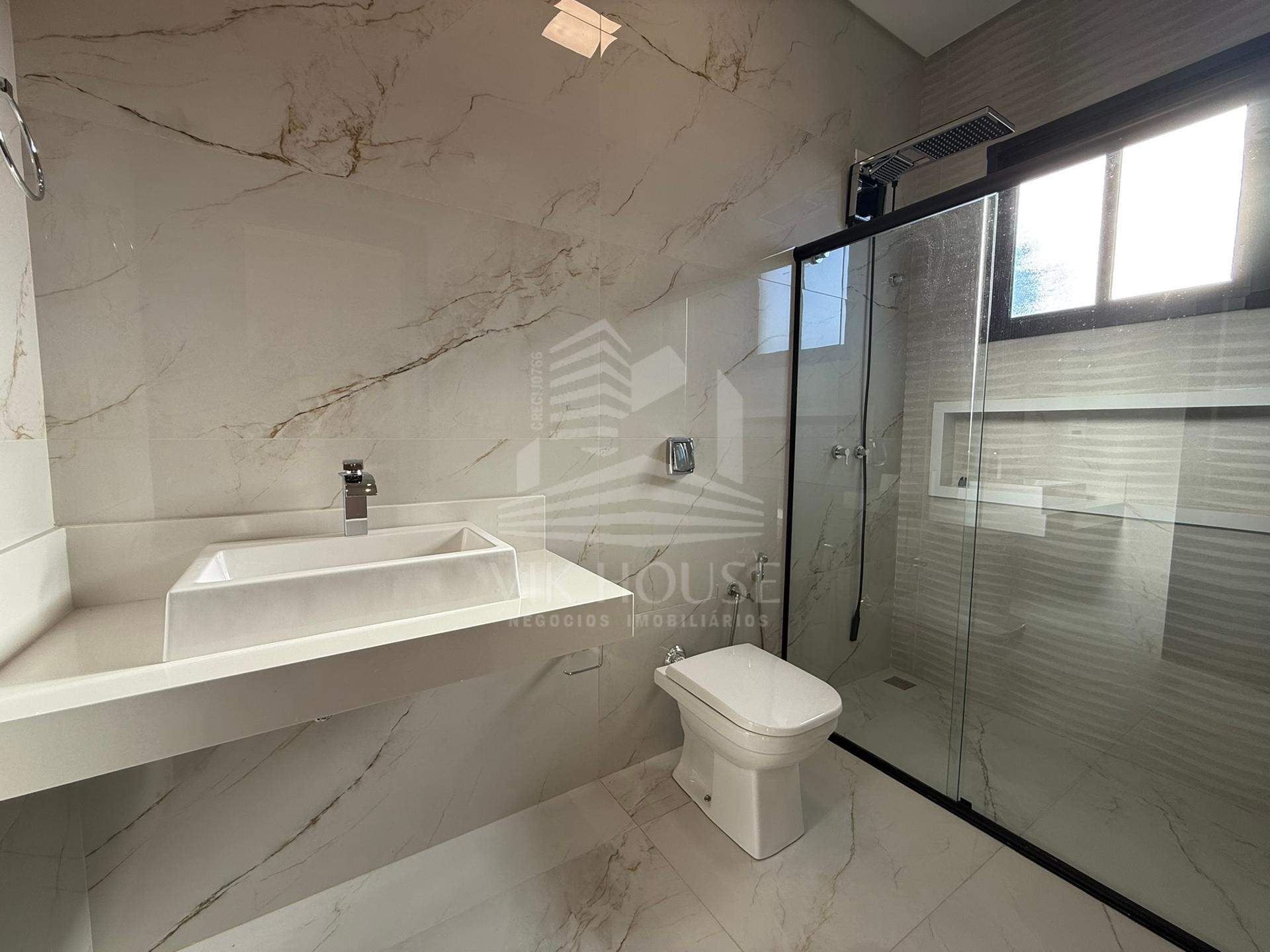 COMPOSTA POR: - Sala de estar / tv; - Cozinha gourmet; - Banheiro na área gourmet; - Lavanderia; - 3 suítes sendo 1 master com closet; - 2 Vagas de garagem; - Jardim com espaço destinado a instalação de piscina (preparação elétrica e hidráulica); - Portas e janelas em alumínio; - Revestimentos padrão diamante; - Persianas automatizadas nas suítes;