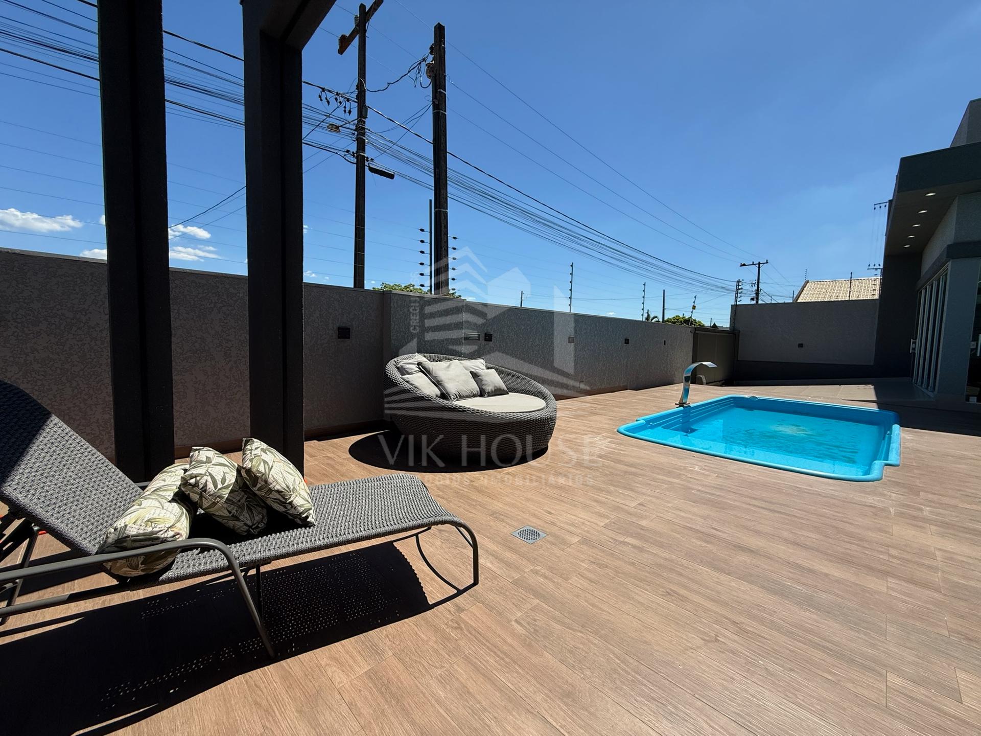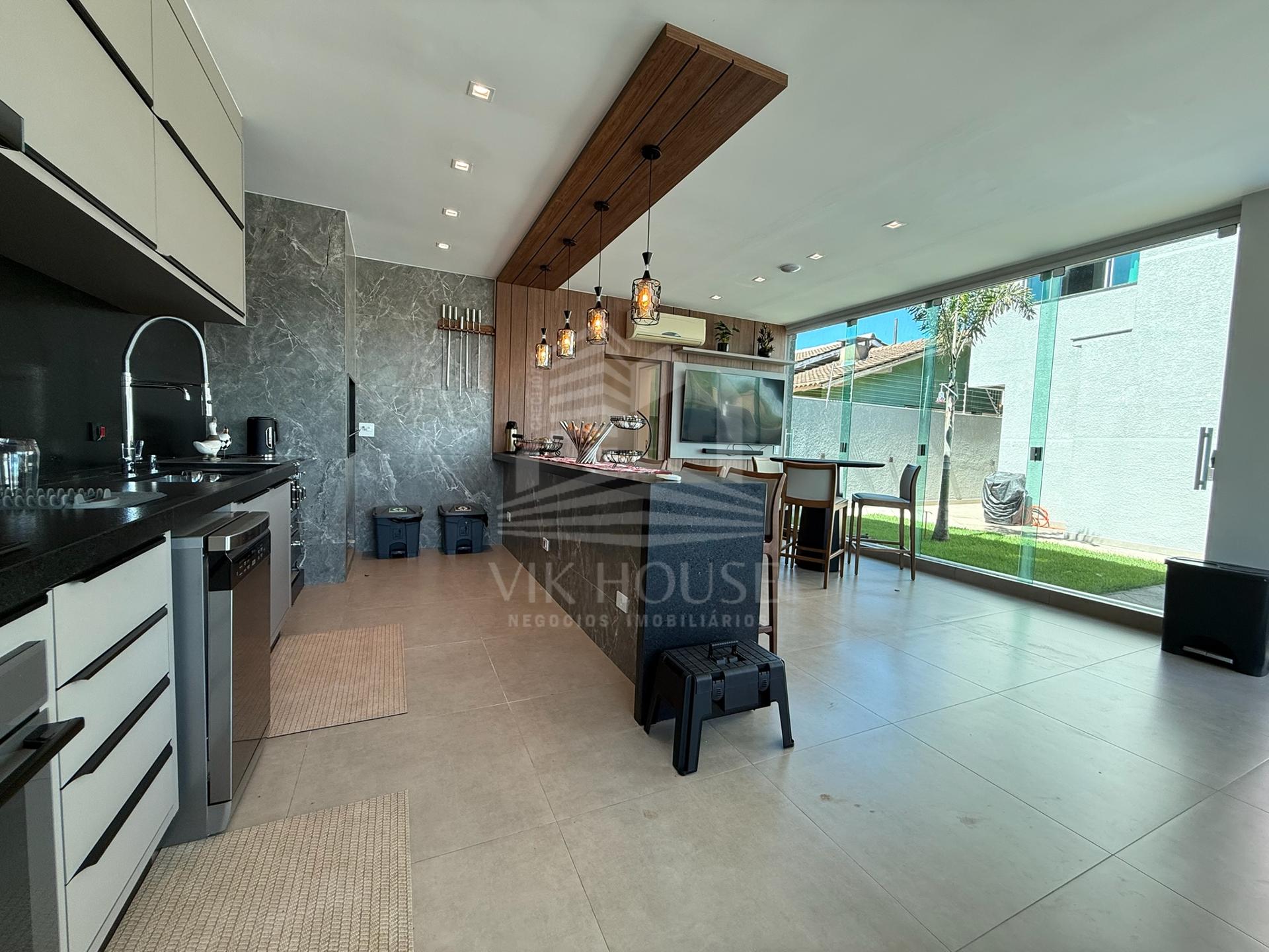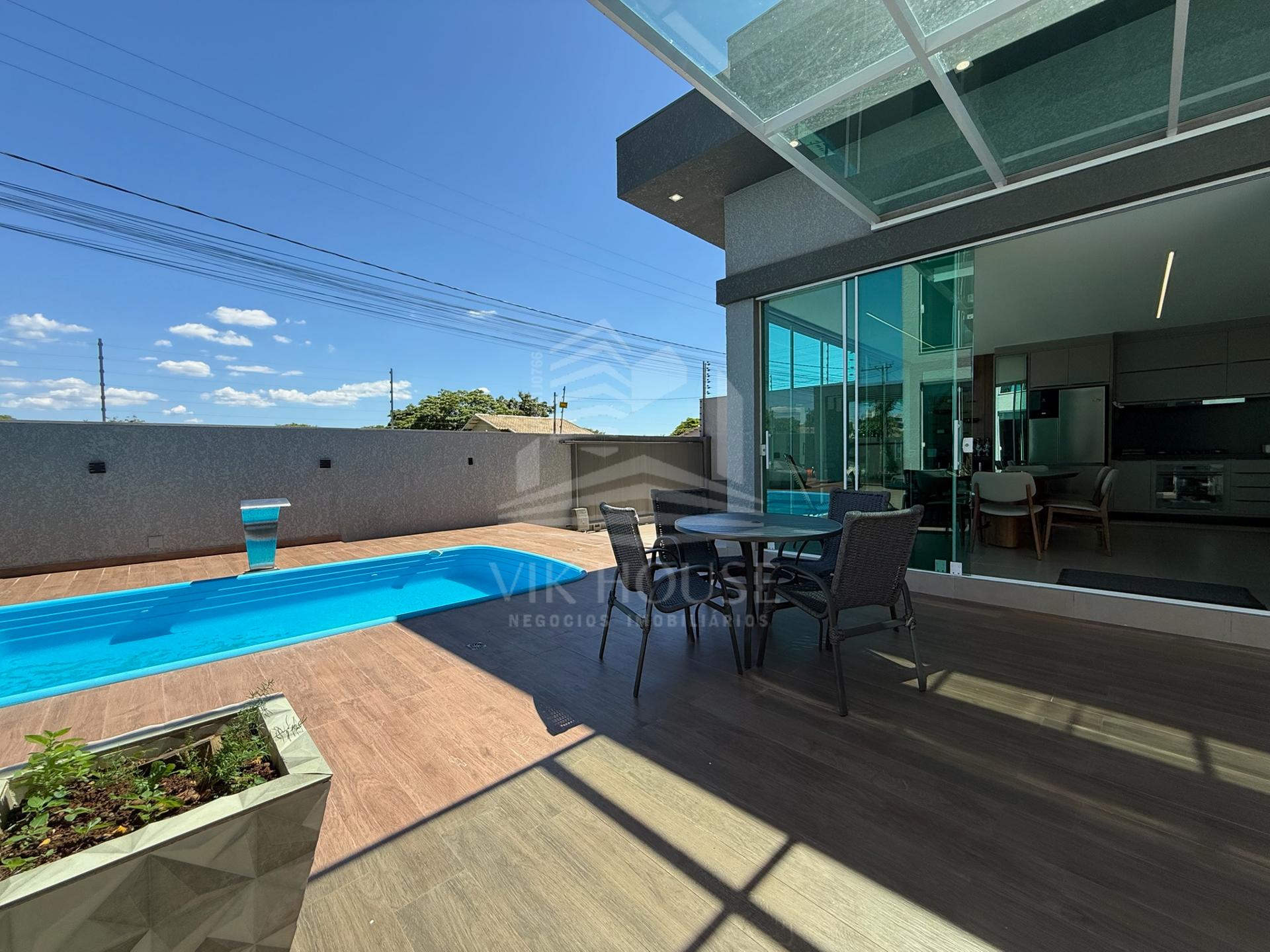 EDICULA - Área de churrasqueira mobiliada e decorada; - Um quarto; - Banheiro social; - Piscina; - Amplo espaço de quintal; - Duas entradas para carro; - Garagem coberta para 2 veículos; - Placas solares; - Recentemente reformado, com acabamento de alto padrão, materiais selecionados e excelente qualidade construtiva.